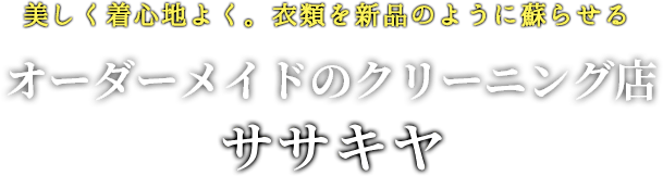 クリーニングササキヤは、高松市で50年以上、クリーニング店を営んでいます。『お客さまの衣類を、限りなく買ったときと同じ状態に復元する』というのが町のクリーニング屋さんの心意気。ブランド服もファストファッションも、お客様の大切な洋服という想いに変わりはありません。